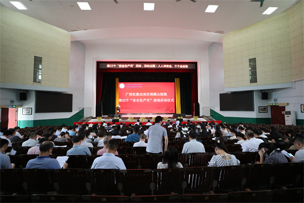 今年6月是全国第22个“安全生产月”,为深入开展学习贯彻习近平新时代中国特色社会主义思想主题教育,进一步加强安全生产工作,筑牢安全生产底线。6月12日,广西壮族自治区南溪山医院围绕2023年安全生产月“人人讲安全 个个会应急”的主题,在该院大礼堂举行“安全生产月”活动启动仪式。该院党政领导班子、各科室中层干部参加仪式。