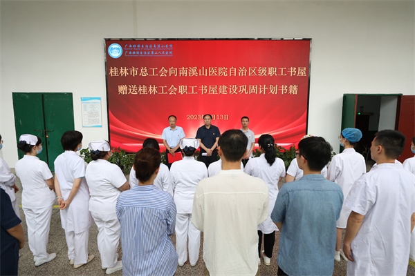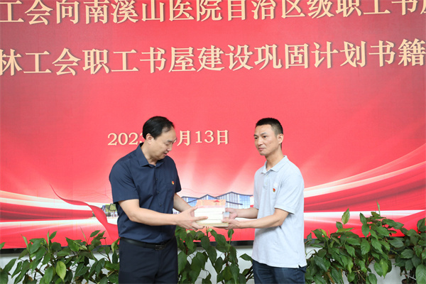 “南溪山医院文化建设有亮点、有特色,党建、工会活动开展的也是有声有色,希望这批图书能对医院职工读书学习起到积极的促进作用!”6月13日,桂林市总工会党组成员、副主席周世伟充分肯定了广西壮族自治区南溪山医院职工书屋建设成效,并代表桂林市总工会向医院捐赠250余本图书,助力打造自治区级职工书屋,巩固桂林市工会职工书屋建设成果。