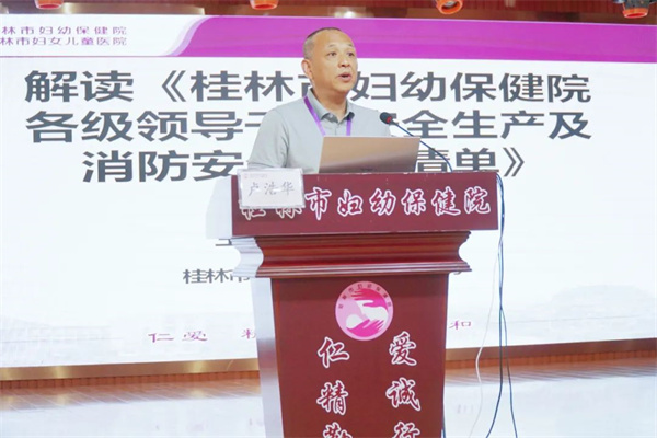党委副书记、院长卢浩华总结了医院安全形势,对《桂林市妇幼保健院各级领导干部安全生产及消防安全职责清单》中各层级、各部门应承担的职责进行了再学习、再强调。他要求,全院干部职工要认真学习贯彻习近平总书记关于安全生产的重要论述,深入学习国务院安全生产十五条硬措施和自治区二十条细化措施,坚持“人民至上、生命至上”,以“安全生产月”活动为契机,加强安全生产宣传教育工作,深入开展群众性的安全科普活动,提高公众的安全意识;加强全院安全生产应急演练、安全风险隐患排查和问题整改工作,切实把安全生产责任落细落实。