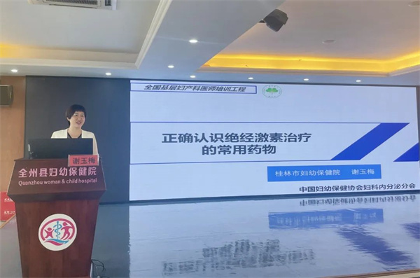 随后,桂林市妇幼保健院副院长王珂、妇女保健科主任谢玉梅、妇女保健科副主任医师龚飞凤、妇二科副主任医师汤丽雪,以及全州县妇幼保健院妇科主任蒋红梅进行了授课。授课内容涵盖卵巢功能评估常用方法、正确认识绝经激素治疗常用药物、基层盆腔子宫内膜异位症早期识别与规范管理、妇科相关性传播疾病的认知与治疗规范及妇科内分泌疾病、常见疾病防治知识等。专家们从新颖、实用、循证的角度全面讲解了妇科内分泌疾病诊治中的新进展、新策略,将实用的学术与基础技能有机结合,为大家带来了一场干货满满的学术盛宴。