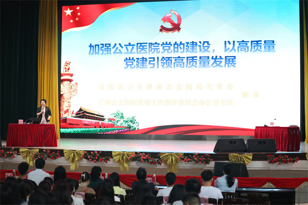 自治区卫生健康委机关党委专职副书记陈彦老师以《加强公立医院党的建设,以高质量党建引领高质量发展》为题作专题辅导。她带领大家系统学习了国家、自治区等层面关于加强公立医院党的建设的有关文件,并就部分内容进行深入解读,为医院加强党的建设工作指明了方向。