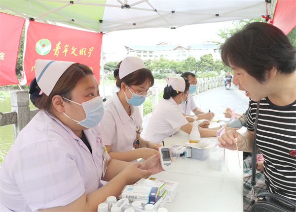 自治区南溪山医院全科医学科医护人员为社区居民测血糖、量血压