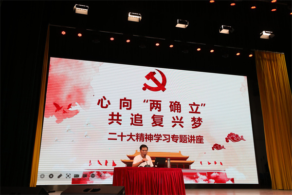 随后,桂林市老年大学副校长伍云以《心向“两确立” 共追复兴梦》为题,为现场的老党员们进行专题讲座。他回顾中国共产党的奋斗历史,阐述党的二十大精神,授课内容得到在场老党员们的阵阵掌声。