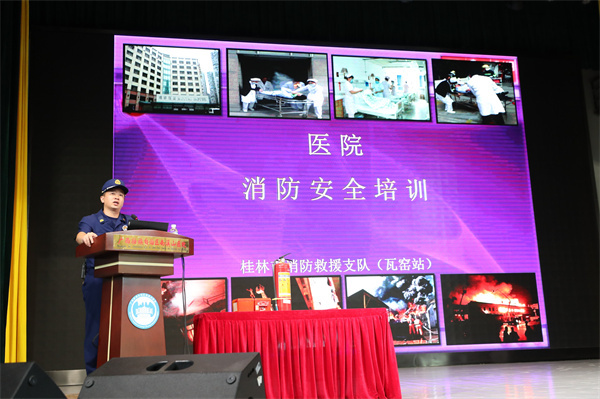 随后,象山区瓦窑消防救援站的教官以《医院消防安全培训》为题,结合实际案例,由浅入深,带领参训人员重温了基础消防知识,通过真实火灾视频案例介绍了日常生活中、工作中所存在的火灾隐患和预防措施,并现场进行各种消防器材的正确使用方法以及使用范围,使参训的医院职工初步掌握了扑救初期火灾的技能,对消防知识有了全面的认识与巩固,同时掌握发生火灾时的紧急处置措施,如发现火灾时怎样报警、如何扑救及自我保护等,提升了医院消防安全“四个能力”建设和自主安全保卫能力。