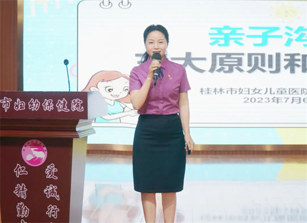 暑期已经来临,父母子女相处的时间也变多了,亲子沟通问题也日益明显。7月6日,第二场公益活动在桂林市妇女儿童医院门诊6楼大会议室成功举行,桂林市妇幼保健院党委书记、医学硕士、高级讲师、国家级心理咨询师、家庭教育咨询指导师、心理沙盘指导师秦初明以《如何做好亲子沟通》为主题,通过线上直播等方式与广大老师、家长一起探讨“亲子沟通的误区”、“亲子沟通的三大原则”、“亲子沟通的三部曲”等话题。