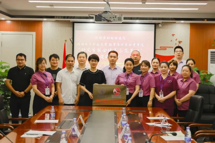 7月3日下午,“桂林市电子科技大学数学与计算科学学院与桂林市妇幼保健院研究生联合培养基地”(以下简称“研究生联合培养基地”)授牌仪式在桂林市妇幼保健院行政一区小会议室举行。桂林电子科技大学数学与计算科学学院党委书记龙雪梅、副院长祝光湖一行5人,桂林市妇幼保健院党委书记秦初明、副院长韦柳霞,及妇科、产科、儿科等科室负责人出席授牌仪式,并参与座谈交流。