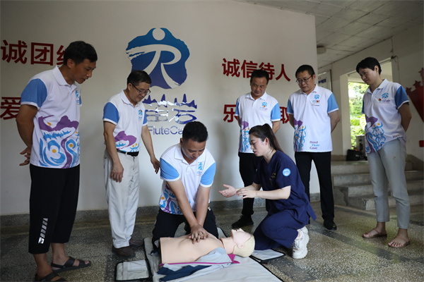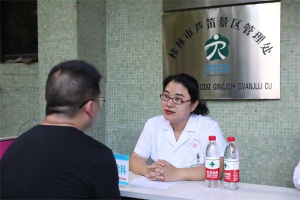 启动仪式后,南溪山医院综合重症医学科医护人员以“海姆立克”和“心肺复苏”为主要内容进行急救培训,为桂林市芦笛景区公司干部职工开展急救知识讲座及实地操作指导。随后,来自南溪山医院国际健康管理中心、老年病科、心血管内科、皮肤科、辅助生殖中心专家为桂林市芦笛岩景区员工提供相关疾病问题的问诊、健康管理咨询等。