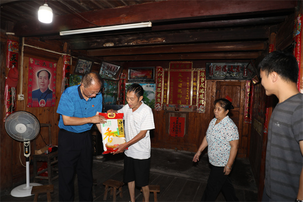 在马堤乡党委副书记向斌乐的带领下,张超群一行来到脱贫户杨友贵家中,倾听他的心声,与他拉家常、问冷暖,详细了解他家庭的产业、就业、家庭收入与身体健康状况,并向他送上了慰问品,把党和政府的关怀,把医院党员的爱心送到心坎上,送到身边。张超群详细询问各项帮扶措施落实情况,宣传和讲解政府具体的帮扶措施,鼓励脱贫户树立起生活的信心和克服困难的决心,引导他增强健康意识、养成良好的个人习惯,把日子越过越好。向斌乐也向杨友贵宣传了政府关于巩固脱贫成果,振兴乡村经济的有关政策,希望他和家人在政府和后援单位的指导、帮助下,增强信心,勤劳致富,同时有困难问题及时向各级政府反映,大家共同努力把山茶村建设的更加富饶美丽。