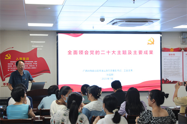 7月10日,自治区南溪山医院党委副书记张超群以《全面领会党的二十大主题及主要成果》为题为该院医技第一党支部、医技第六党支部的党员上了一场主题教育专题党课。