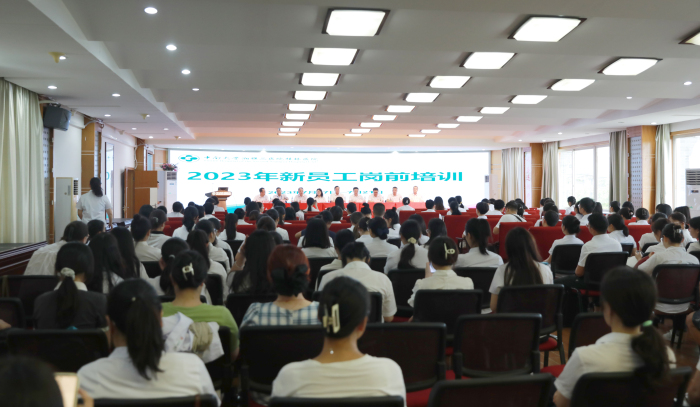 近日,中南大学湘雅二医院桂林医院举行2023年新员工岗前培训开班仪式暨院领导见面会。党委书记、院长刘先领及医院领导班子全体成员,与141名新入职员工进行见面,并举行开班仪式,仪式由副院长黄贤圣主持,部分岗前培训授课老师参加会议。