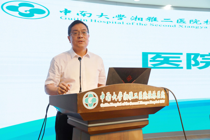 党委书记、院长刘先领首先致辞。他代表医院对加入中南大学湘雅二医院桂林医院大家庭的141名新员工表示热烈欢迎,并作动员讲话。他号召新员工以主人翁精神,认真参与医院精心设计的岗前培训,该岗前培训分为两个阶段,分别是为期一周的在桂培训以及随后前往中南大学湘雅二医院为期3至12个月不等的系统培训。此次新员工培训,对标国家区域医疗中心建设的高标准高要求,得到了中南大学湘雅二医院(项目输出单位)的大力支持和鼎力相助。所有课程和培训均由专家精心设计、反复斟酌,其目的在于通过高质量、高强度的岗前培训,塑造一支高水平队伍,投身国家区域医疗中心建设工作,为医院各项事业高质量发展注入新动能。