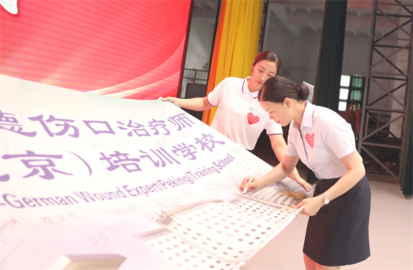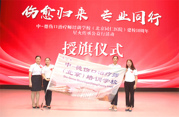 中-德伤口治疗师(北京)培训学校代表张欣护长进行授旗仪式并合影