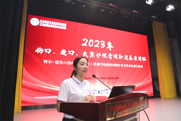 7月22日,为满足临床医疗和护理工作需求,运用更先进的伤口、造口和失禁护理技术造福患者,广西壮族自治区南溪山医院护理部与中-德伤口治疗师(北京)培训学校在该院大礼堂举办2023年伤口、造口、失禁护理管理新进展学习班,为桂林护理人员“传经送宝”。桂林市20余家医院的护理部主任、护士长和护理骨干200余人参加学习班。