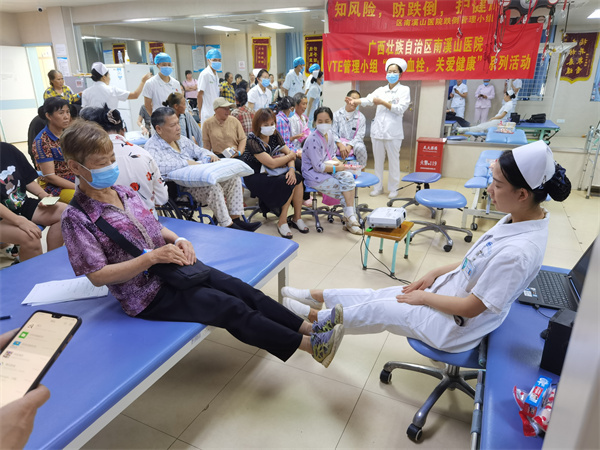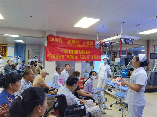 7月22日,广西壮族自治区南溪山医院静脉血栓防治护理小组与跌倒防治护理小组联合在康复医学科开展了以“预防深静脉血栓和跌倒”为主题的健康科普宣教会,增强患者及公众对下肢深静脉血栓防治与预防跌倒的认识,持续提升患者就医体验,切实推动护理⼯作更加贴近患者、贴近临床和贴近社会。