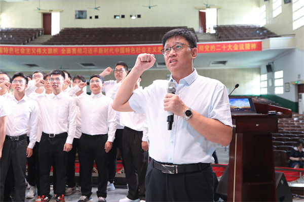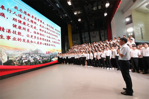 医院党委书记戴前富带领新职工进行庄严的宣誓