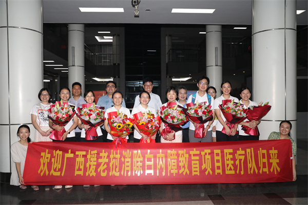 7月21日,由广西壮族自治区南溪山医院8名医护人员组成的广西第三批援老挝“消除白内障致盲项目”医疗队,圆满完成了为期45天的援外医疗任务,平安返回桂林。