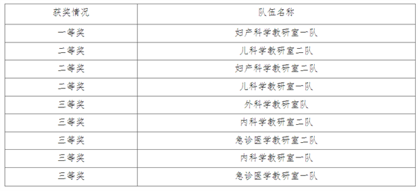 本次院内竞赛设置了初赛、决赛两个部分。其中初赛采取多站式,共有9个站点,成绩相加后排名前四的队伍进入决赛。决赛为赛道式,共有4个场景。经过激烈角逐,由妇产医学教研室一队斩获一等奖,儿科学教研室二队、妇产科学教研室二队、儿科学教研室一队获得二等奖。