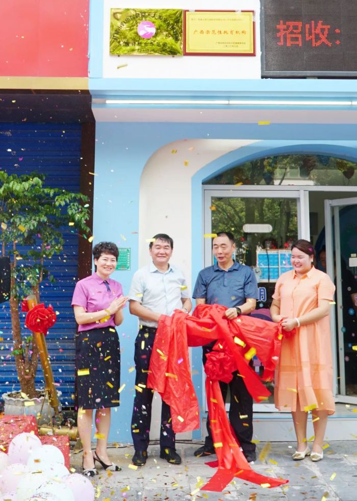 桂林市卫生健康委员会人口监测与家庭发展科科长叶法明、叠彩区卫生健康局局长张涛、桂林市妇幼保健院副院长马丽、桂林市七彩宝屋托育园园长蒋恒共同揭牌。