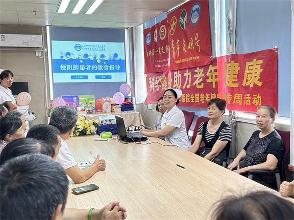 活动中,内科第一党支部党员廖艳为老人们分享了《膳食新指南,健康长相伴》、《口腔健康宣教》、《慢阻肺患者的饮食指导》等内容,积极宣传老年健康政策、老年膳食和口腔的健康科普知识,帮助他们养成健康的生活习惯。