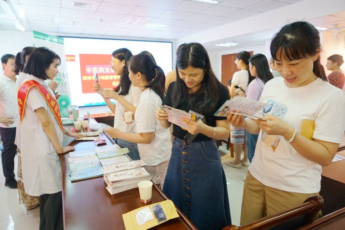 为进一步弘扬中医药文化,传播中医药健康知识,提升机关干部职工中医药健康文化素养,7月25日,桂林市中医医院“中医药文化服务月暨中医药文化进机关”活动走进桂林市市场监督管理局,为机关工作人员免费义诊,普及中医药文化知识,推广中医药特色疗法。