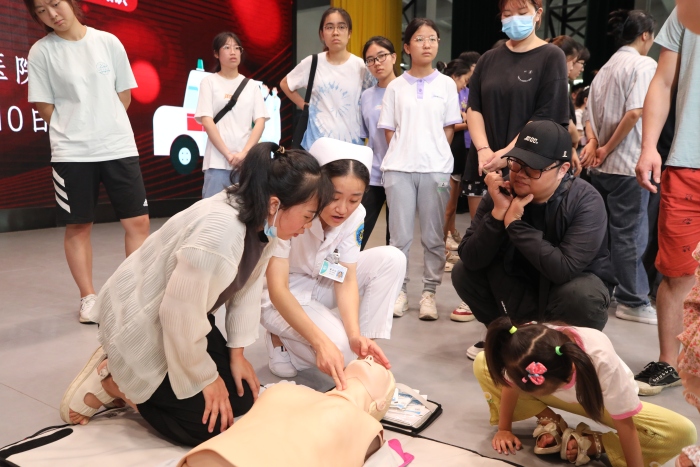 活动现场,南溪山医院急诊科、综合重症医学科的医护人员通过理论知识讲解、现场实操培训,详细介绍徒手心肺复苏和海姆立克急救法,并邀请青年志愿者现场演练。志愿者们纷纷表示,难得有机会零距离接触医学模具,真实操作一番才发现有很多细节需要注意,这对增强个人急救意识和提升急救能力大有裨益。