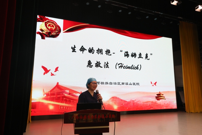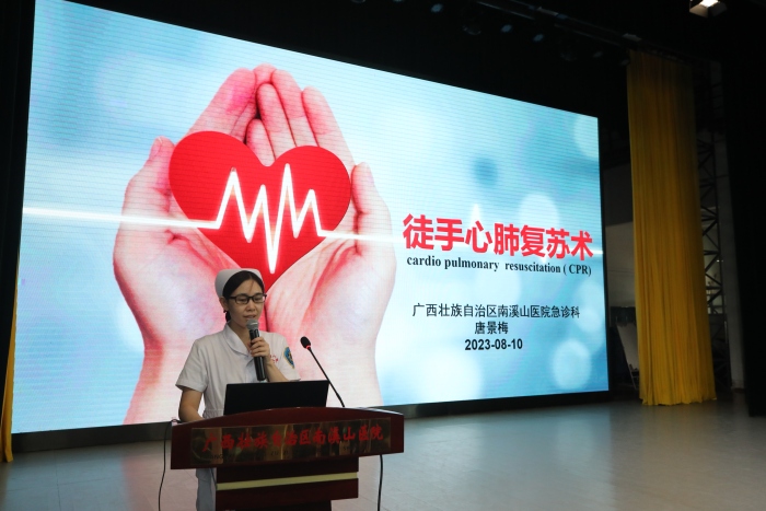 8月10日,广西壮族自治区南溪山医院在医院大礼堂举办急救知识培训班。来自桂林漓江搜救队、桂林旅游投资集团有限公司等单位的团员青年和50余名大学生志愿者参加。