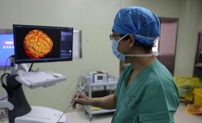 近日,桂林医学院第二附属医院神经外科成功完成广西首例机器人辅助MCS(Motor Cortex Stimulation,运动皮层电刺激)手术治疗丘脑痛,在机器人导航定位下精细标记特定脑功能区并规划设计手术路径,于疼痛病灶传导通路上方精准植入电极释放电刺激,抑制病理性痛觉,其精准神经调控技术为中枢性疼痛患者带来了治疗新希望。