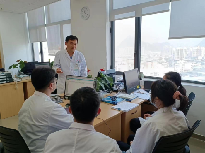 今年1月,57岁的唐阿姨出现身体极度消瘦、言语含糊欠清、吞咽困难、无法下床等情况,被家人送至医院急诊抢救,在当地医院入院后,唐阿姨出现了严重低钠血症。家人辗转带着唐阿姨来到了桂医二附院神经内科。经详细检查,唐阿姨被确诊为“髓鞘中央溶解综合征”。通过查阅相关文献、凭借着神经内科的临床经验,仇付龙给予唐阿姨大剂量丙种球蛋白冲击治疗。看着唐阿姨一天天地好起来,出院当天,唐阿姨握着仇付龙的手,不停地说着感谢,仇付龙说:“看着病人重获新生般的笑容,我觉得我的工作有意义。”