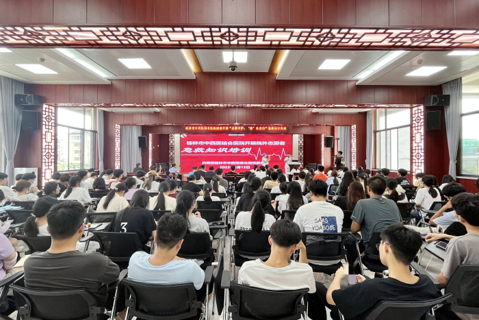 为增强广大志愿者安全防范意识和应对突发事件的处置能力,让志愿者能掌握正确的基本救护理念和技能,在突发事件中争取“救命的黄金时间”,提高自救和互救能力,近日,桂林市中西医结合医院团委组织医院急救小组专家开展院外志愿者急救知识培训,参加培训的志愿者有150余人。