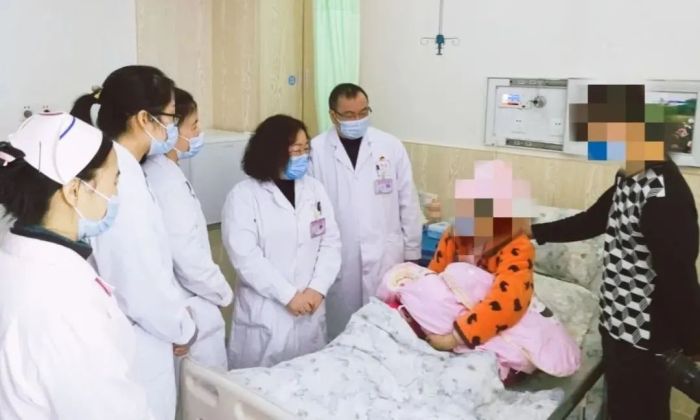 在病房里,桂林市妇幼保健院产房主任、副主任医师李美英带着医师们正在查房:“眼睛朦吗?看得清吗?这是几根手指?晚上睡得如何?瞌睡吗?”