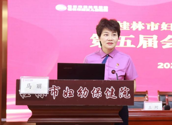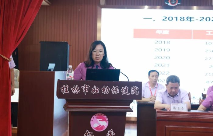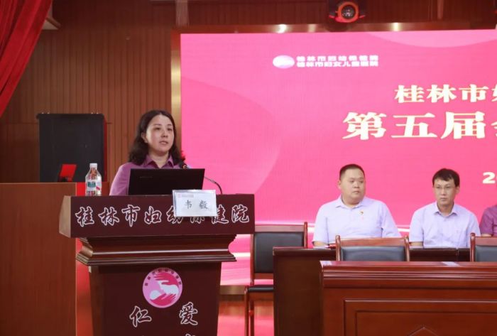 桂林市妇女儿童医院副院长、第四届工会主席马丽作《第四届工会委员会工作报告》