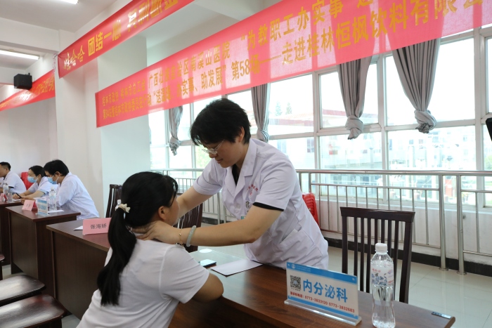 9月1日,由桂林市政协、桂林市总工会携手广西壮族自治区南溪山医院联合举办的“为职工办实事 送医送健康进基层”第84场暨桂林市政协委员在行动——“送温暖、办实事、助发展”第58站走进桂林恒枫饮料有限公司,为企业职工送上健康服务。