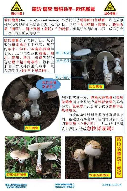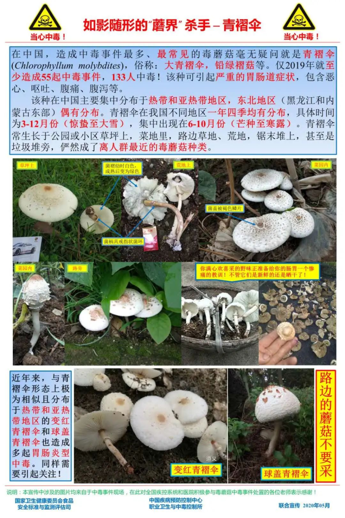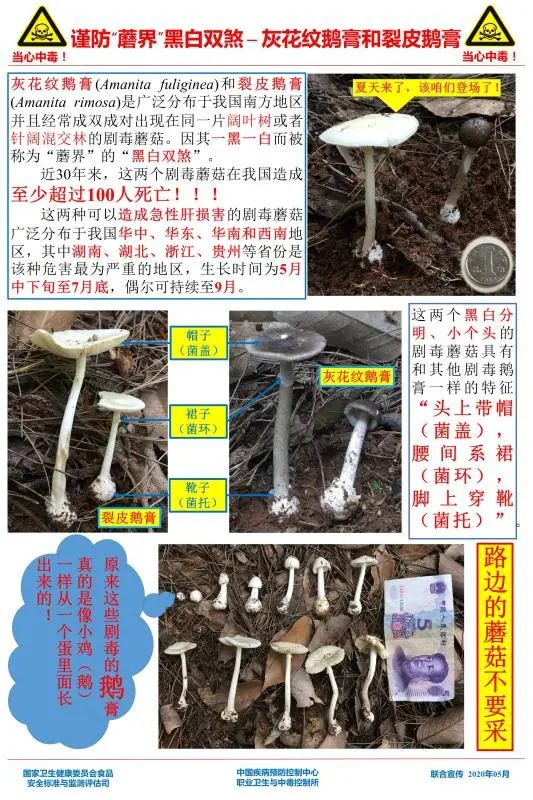 分布于我国热带至亚热带地区,剧毒鹅膏是一类含有剧毒环肽类毒素的真菌,因其外形与可食的鹅膏极为相似,故常误食导致中毒。