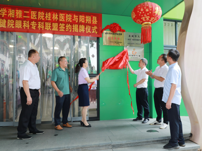 9月22日上午,中南大学湘雅二医院桂林医院儿童眼保健眼科专科联盟签约揭牌仪式在阳朔县妇幼保健院成功举行。中南大学湘雅二医院桂林医院副院长温利辉、评价办公室主任雷蔚菲,阳朔县卫生健康局局长陆建明,阳朔县妇幼保健院副院长王丽英(主持工作)等相关领导出席签约仪式,中南大学湘雅二医院桂林医院眼科医疗专家团队、相关科室负责人及阳朔县妇幼保健院干部参加活动。