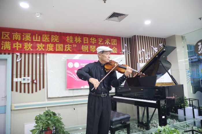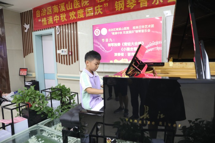 9月28日下午,广西壮族自治区南溪山医院团委携手桂林日华艺术团举办“情满中秋·喜迎国庆”钢琴音乐会,通过音乐向大家传递节日祝福。