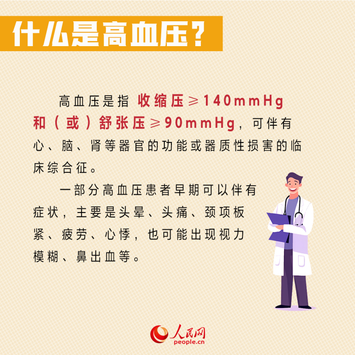 10月8日是全国高血压日。首都医科大学附属北京友谊医院心血管中心主任医师黄榕翀在接受人民网记者采访时表示,高血压并非老年人的专属,患者正在呈现年轻化趋势。由于高血压患者很多并没有太多症状,需要通过测量血压才能诊断,因此,近半数患者不能及时发现自身血压增高,未能规范诊治,导致心脑血管疾病发病率和病死率仍处于上升趋势。