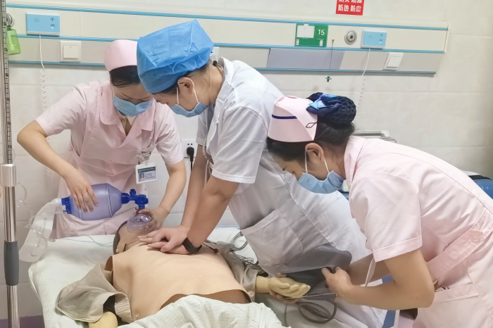 在综合二科病区进行了突发呼吸、心搏骤停应急处置及演练,演练以实景方式模拟住院患者突发意识丧失、触摸颈动脉搏动消失,医护人员立即呼叫并展开抢救,人员迅速到位,分工明确,通过实施心肺复苏、电除颤、用药、气管插管等紧急抢救措施使患者转危为安。整个演练过程始终秉承“把演练当实战”的工作心态,临危不乱,配合默契,争分夺秒进行抢救,演练人员反应迅速、程序流畅,医护团结协作,高质量完成本次演练任务。