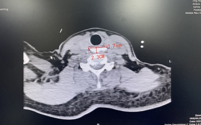 患者到院后,消化内科、内镜中心医师庾艳军了解刘先生的情况后,立即安排其进行颈部CT检查,以明确异物所在部位及异物与周边组织的关系。从CT判断,继续耽搁下去可能会给患者带来更大风险,骨头移位可能造成食道穿孔或者骨头移位后卡在临近主动脉的第二狭窄处,后果将更为严重!庾艳军立刻协调安排,预估手术风险及难度,进行术前模拟和讨论,以最快速度完善相关术前准备,确保以最短时间、最小损伤完成此次手术治疗。