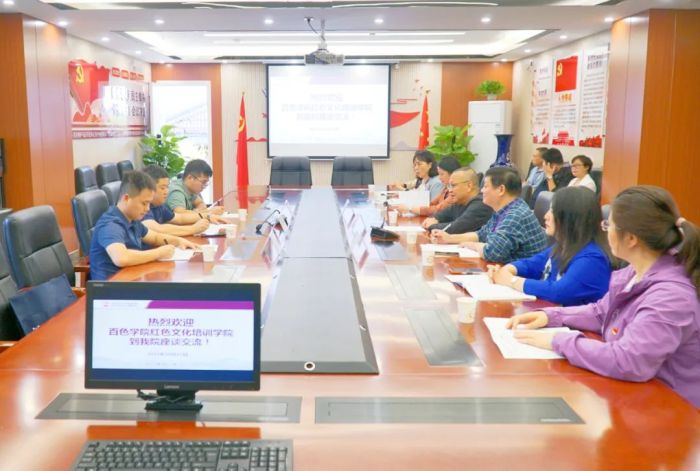 近日,百色学院红色文化培训学院副院长(主持工作)谢永林一行三人到桂林市妇幼保健院交流党建工作,医院党委副书记、院长卢浩华,党委副书记、纪委书记孙辉,党委委员、副院长谢长春出席座谈交流会,相关职能科室负责人及部分基层党支部书记参加座谈。
