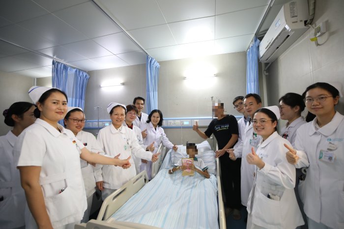 10月18日下午,广西壮族自治区南溪山医院消化内科主任张启芳带着医护团队,将一个装满爱心款的信封袋交到了一位父亲的手中。