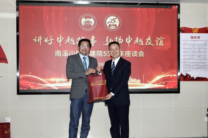 座谈会上,越南驻南宁总领事馆和南溪山医院互赠礼物。