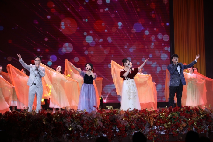 院史讲述、京剧表演、广西文场、诗朗诵、场景歌舞、大合唱轮番上演……演出主要由医院新老职工和医联体成员单位联合演绎,展现了南医人爱岗敬业、艰苦奋斗、救死扶伤、乐于奉献的精神风貌。每一个节目都深深表达了对医院建院55周年的祝福,一幕幕精彩的表演将现场气氛一次次推向高潮,让到场观众享受了一场视觉盛宴,台下观众更是热情不减,掌声雷动。