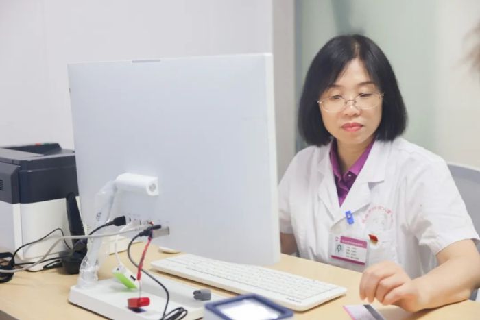 桂林市妇幼保健院乳腺科主任龙安莉在“乳头溢液专病门诊”出诊