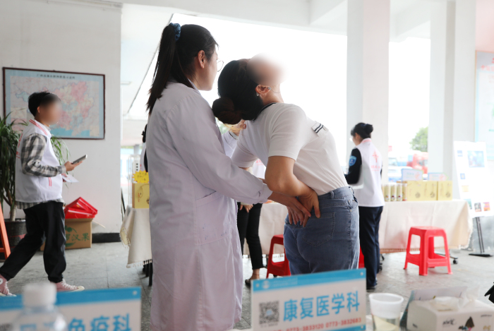 南溪山医院康复医学科医师黄荣为企业职工检查身体