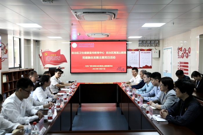 10月31日,自治区卫生健康宣传教育中心党支部书记、副主任周婷一行7人到广西壮族自治区南溪山医院开展党建融合发展主题党日活动。