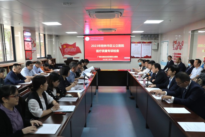 11月2日上午,桂林市卫健委四级调研员王忠明带领专家组到广西壮族自治区南溪山医院开展医疗质量专项检查。