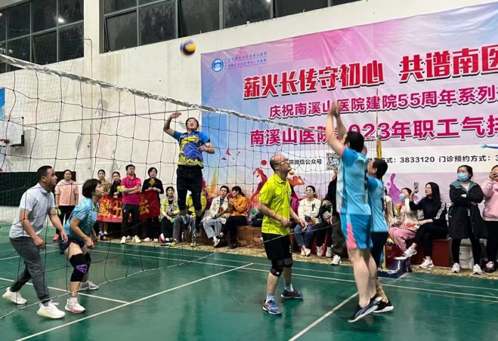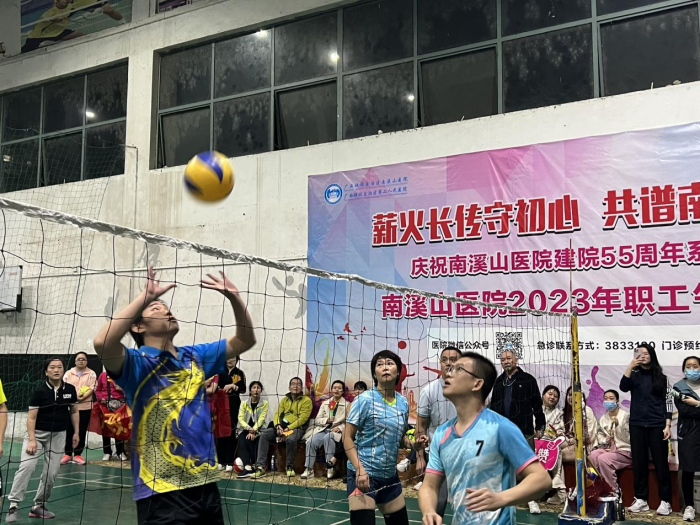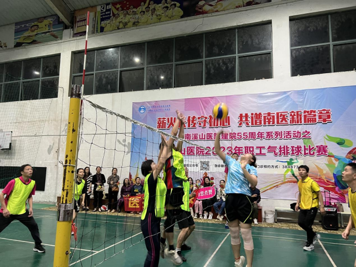 开赛前,伴随着南溪山医院院歌《健康人间,大爱无疆》,运动员们以饱满的精神状态列队入场。随着医院副院长唐芬一个迅猛有力的发球,比赛正式打响。球员们很快进入状态,他们打起十二分精神,奋力拼搏,各展所长,从发球、起跳、拦网、到扣球,队员们配合默契,每一个瞬间都牢牢抓住了观众的注意力,引得场边观众阵阵欢呼,现场气氛热烈。