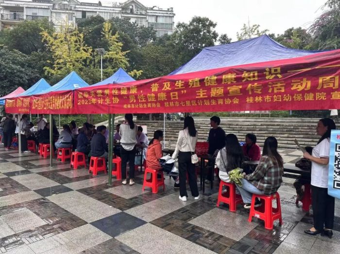 为普及男性健康科学知识,呼吁全社会关注男性健康问题,增强男性自我保健意识,全方位守护男性健康,10月29日上午,由桂林市卫生健康委、市计划生育协会组织,市妇幼保健院专家团队来到七星区三金广场开展2023年“男性健康日”主题宣传周活动,围绕“守护男性健康,提高人口素质”的主题,为前来咨询的群众解难题,护健康。