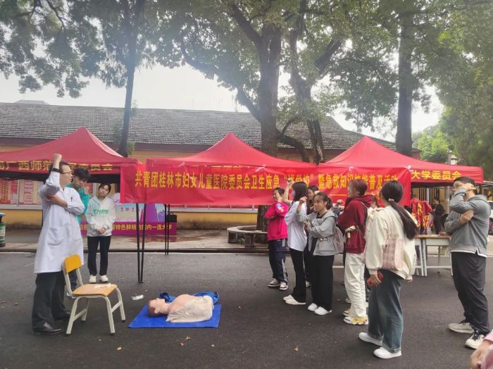 为深入开展卫生应急知识进企业、进农村、进社区、进学校、进家庭活动,提高公众自救互救、防灾减灾意识和能力,提升公众急救处理能力,降低突发事件对人民群众身心健康的危害,11月8日下午,桂林市妇幼保健院赴广西师范大学王城校区开展卫生应急知识进学校活动暨急救知识技能普及培训。