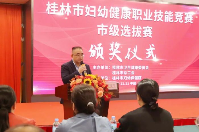 市总工会副主席李国玉指出,本次竞赛,是对培育更多高技能人才助推桂林经济高质量发展,为全力打造桂林世界级旅游城市作贡献的有力回应,激励全市妇幼健康服务战线工作人员牢记使命、感恩奋进,切实提高综合业务技能的生动实践,恰逢其时、意义深远。他强调,各位参赛选手要以此为契机,以满格状态、顶格标准加力提速,大力弘扬劳模精神、劳动精神、工匠精神,求真务实、扎实进取,在自己的工作领域内有所作为,为全方位、全周期保障妇女儿童健康,促进全市妇幼健康事业高质量发展作出新的更大的贡献,奋力谱写建设新时代壮美广西的桂林新篇章。